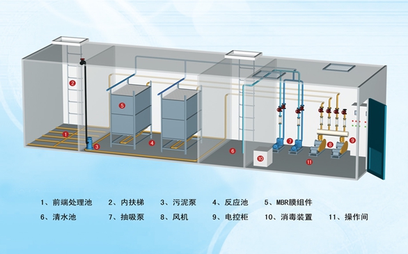 图:一体化污水处理设备(MBR工艺)工作流程示意图