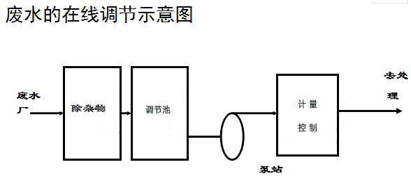 在线调节的流程是全部废水流量均通过调节池,可以大幅度地调节废水的成分和流量,但能源消耗大。